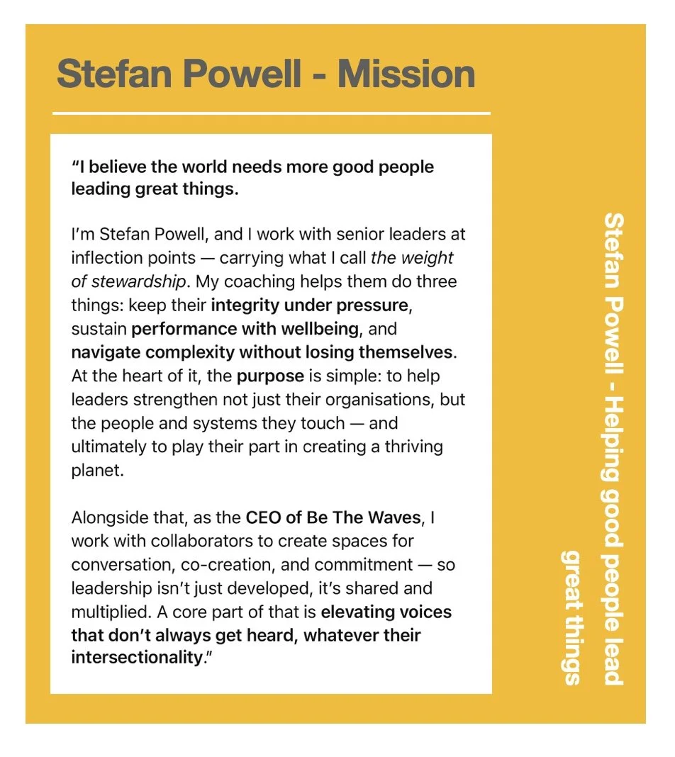Get in touch - If any of this topic resonated with you and you have something you’d like to share with me or if you’d like to discuss working with me on this topic - stefan@stefanpowell.co.uk works really well for me.