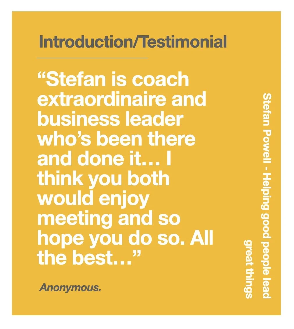 Get in touch - If any of this topic resonated with you and you have something you’d like to share with me or if you’d like to discuss working with me on this topic - stefan@stefanpowell.co.uk works really well for me.